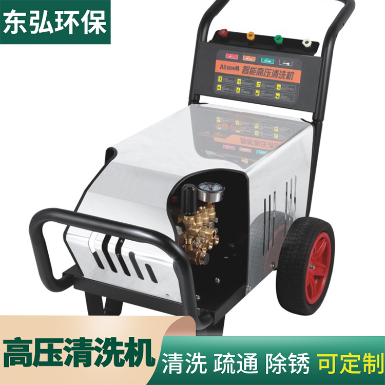 高壓清洗機(jī),是通過(guò)動(dòng)力裝置使高壓柱塞泵產(chǎn)生高壓水來(lái)沖洗物體表面的機(jī)器。它能將污垢剝離,沖走,達(dá)到清洗物體表面的目的。因?yàn)槭鞘褂酶邏核謇砦酃,所以高壓清洗也是世界公認(rèn)科學(xué)、經(jīng)濟(jì)、環(huán)保的清潔方式之一。 高壓洗衣機(jī)是一種高壓水射流清洗設(shè)備,它加水加壓至足夠的壓力,并使用高壓水清洗污垢